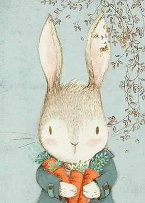 Hase Tom weiß, dass Karotten viele Vitamine haben und dazu lecker sind! Das Poster im Stil eines mit Wasserfarben gemalten Gemäldes passt perfekt in ein kindliches Vintage-Interieur. Das Bild wird eine wundervolle Atmosphäre im Zimmer deines Kindes erzeugen.