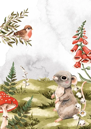Dieses Poster im Aquarellstil ist die perfekte Ergänzung für ein Kinderzimmer mit Waldmotiven. Zusammen mit anderen Postern der Serie schafft es eine einzigartige, gemütliche Atmosphäre.