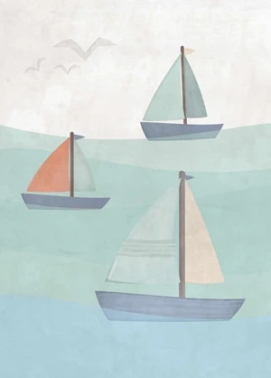 Ein Poster, perfekt für alle Fans von maritimen Abenteuern. Pastellfarben und feiner Strich passen gut in ein Kinderzimmer. Wer ist bereit für einen Ausflug?