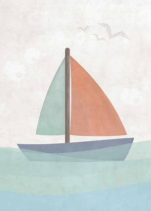 Ein Poster für alle Fans von maritimen Abenteuern. Pastellfarben und feine Linien passen perfekt in ein Kinderzimmer. Hallo!