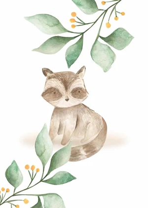 This poster depicts Tadek the raccoon. Styled to resemble a watercolor painting, this poster is perfect for a forest-themed room. Paired with other posters from the "Forest Babies" series, it will create a unique atmosphere in any child's room.