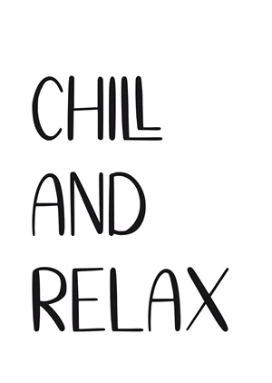 Emanating a serene simplicity, the 'Chill and Relax' poster invites a moment of calm into any space it adorns. A minimalist design dominates the canvas, with the phrase "CHILL AND RELAX" laid out in a carefree, handwritten font that seemingly dances across the stark white background. The black text provides a bold contrast, ensuring the message captures the eye and the essence of tranquility it intends to convey. The playful irregularity of the lettering adds a touch of personal charm, suggesting a human touch in the creation of this piece.
