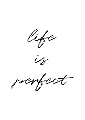 Drawing inspiration from modern minimalism and the enduring appeal of calligraphic art, this poster captures the essence of contemporary chic, while invoking a peaceful, meditative mood within its environment. The starkness of the design, combined with the uplifting message, is designed to evoke feelings of contentment and completeness, making it an impeccable addition to any space that values clarity and inspiration. The 'Life is Perfect' poster is exemplary for display in living rooms, home offices, or creative studios, infusing an uplifting atmosphere into everyday surroundings. Its universal message paired with its stylish execution invites introspection and positivity, serving as a daily reminder of the beauty and fullness of life.