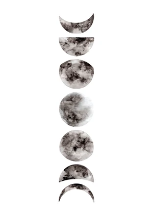 Inspired by the minimalist movement and modern design's penchant for clean lines and natural motifs, 'Moon Phases' exudes both tranquility and contemporary sophistication. It draws upon a universal fascination with the cosmos and mankind's enduring relationship with the night sky, channeling a sense of wonder and introspection. The serene palette and organic subject matter suggest a contemplative mood that can transform any room into a peaceful retreat. Ideal for a reflective corner in a home library, an accent piece in a serene bedroom, or an inspiring backdrop in a creative studio, this poster is a timeless choice for those wishing to add a touch of lunar magic to their decor. Invite the mystique of the moon into your personal oasis, and let 'Moon Phases' elevate the ambiance with its sublime simplicity and ethereal beauty.