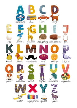 A poster with the English alphabet will be an educational decoration in your child's room.