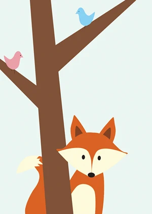 This poster depicts a fox hiding behind trees. Together with other posters from the "Peek-a-Boo" series, it will create a unique atmosphere in a child's room.