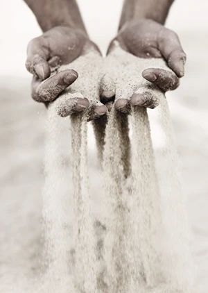 This subtle poster depicts hands pouring fine sand in a monochromatic palette, evoking the passage of time and the fleetingness of the moment, which introduces an atmosphere of peace and reflection to the interior, ideal for a home office or living room, where its minimalist design can inspire reflection and relaxation.