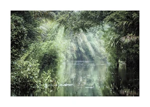 The 'Rainforest' poster seems to draw inspiration from the Romantic era, celebrating the awe of nature's grandeur, and showcasing the lushness of life untouched by human hands. It also echoes the contemporary trend towards biophilic design, promoting a harmonious connection between human spaces and the natural world. This piece has the power to evoke a sense of calm and contemplation, making it a mood-setting addition to any environment. It is fitting for those wishing to create a tranquil retreat within a home, an inspiring ambiance in a creative workspace, or a calming atmosphere in a professional setting. Hanging this poster in a living room, study, or wellness space would be ideal for instilling a sense of nature's quiet majesty and the peaceful solitude of a remote jungle paradise.