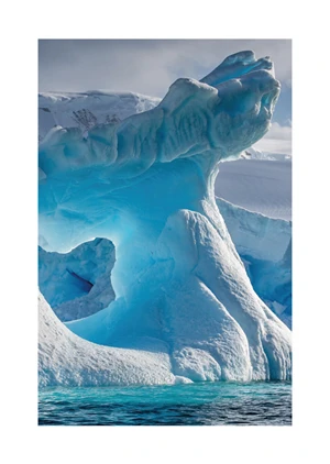 Discover the serene beauty and dramatic contrasts of 'In the Land of Ice,' a captivating poster that transports viewers to the heart of Earth's frosty wilderness. The poster showcases a magnificent iceberg, carved by nature's artistry into flowing contours and peaks that soar toward the sky. The translucent blues and whites of the ice stand out against a backdrop of muted greys and blues of the surrounding water and distant landscapes, inviting the eye to traverse every crevice and plane. This stunning image captures the play of light as it filters through the ice, giving life to the chilling beauty of the arctic vista. Frozen in time yet hinting at the impermanence of our planet's icy realms, this poster becomes a conversation piece with its striking organic form and complex interplay of light and shadow.