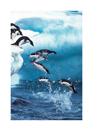 Immerse your space in the dynamic interplay of nature with the 'Hops to Water' poster, a vibrant testament to wildlife's unbridled essence. This captivating piece showcases a series of orcas, also known as killer whales, leaping gracefully from the crest of azure waves into the calm depths below. The composition juggles the stark contrast between the orcas' monochrome palette and the myriad shades of blue enveloping them, creating a mesmerizing visual symphony. Splashes of white water droplets frozen in time enhance the kinetic energy of the scene, offering a snapshot of nature's rhythm and raw power. Its vertical orientation guides the eye seamlessly from the anticipation of the apex to the tranquil plunge, encouraging a moment of awe and contemplation.