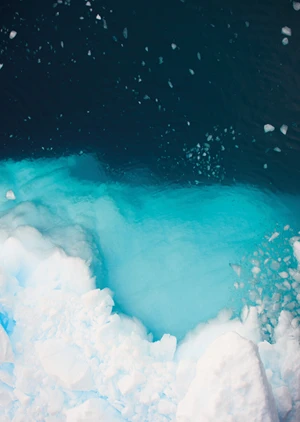 Immerse yourself in the serene beauty of the polar wilderness with the 'Antarctica' poster, a magnificent portrayal of the icy landscapes that define Earth's southernmost continent. The poster is awash with a spectrum of blues, from the deep navy of the ocean depths to the luminous cyan tones that seem to glow from within the ice. This captivating blend of colors is punctuated by the stark white of freshly fallen snow, creating a visual contrast that is both striking and soothing. A dominant visual element is the ethereal light that filters through the ice, drawing the eye to the mysterious world beneath the solid surface. The composition masterfully encapsulates the majesty and isolation of the Antarctic environment, while the interplay of light and shadow adds a dynamic three-dimensional quality to the piece.