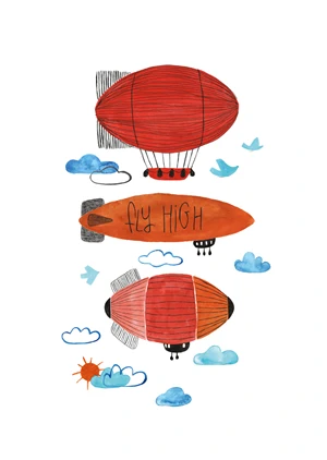 A poster depicting red airships with black lettering will bring an atmosphere of adventure to your child's room.