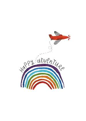 A colorful poster depicting rainbows with an airplane will bring an atmosphere of adventure to your child's room.