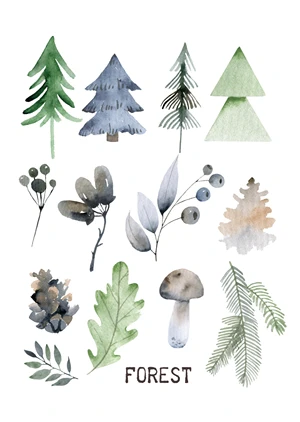 A poster depicting forest elements stylized as a watercolor painting will certainly work well in a forest-themed child's room.
