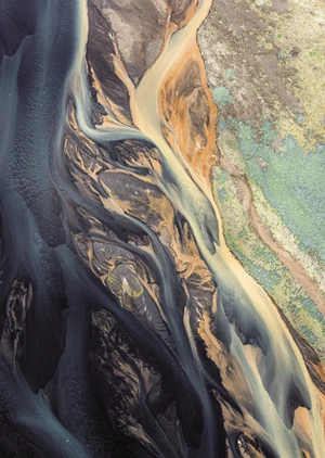 Introducing "Magically," a captivating poster that seems to capture the fluid dynamics of nature's own artistry. The composition of this piece is a mesmerizing interplay of colors, with rich earthen tones of bronze and gold that flow like veins across a canvas of deep, enigmatic blacks and soothing blues. The dynamic swirls and organic shapes draw the eye in a dance reminiscent of aerial landscapes or geological cross-sections. Its dominant motif evokes a sense of otherworldly topography, leaving the viewer enthralled by its abstract beauty. The luxurious and variegated textures suggest the masterful strokes of a grand, unseen artist, and the image possesses a depth that encourages contemplation and introspection.