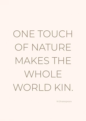Discover the subtle elegance of 'One Touch,' a minimalist poster that speaks volumes with its understated charm. This artwork features a warm, neutral palette with its creamy background offering a soothing canvas for the crisp, bold typography that articulates the timeless quote, "One touch of nature makes the whole world kin," attributed to W. Shakespeare. The selection of a classic serif font reinforces a connection to historical texts, inviting contemplation and reverence. Not a single motif distracts from the power of the words, making this poster a focal point of refined simplicity that can harmonize with any decor.