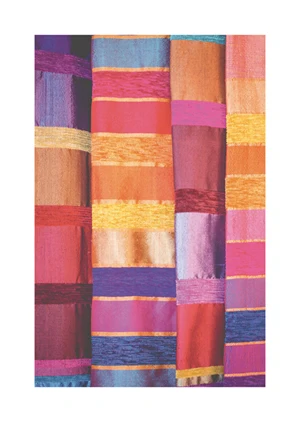 Introducing 'Colors', a vibrant and captivating poster that serves as a feast for the eyes and a spark for the imagination. Upon viewing, one is immediately drawn to the dynamic spectrum of hues, each band of color laid beside the next in bold contrast and harmonious composition. The varied textures within the swaths of color suggest a tactile dimension, reminiscent of fabric or woven tapestries. The alternating widths and tones form a lively rhythm, creating a mosaic of warmth that promises to enliven any space with its energetic presence.