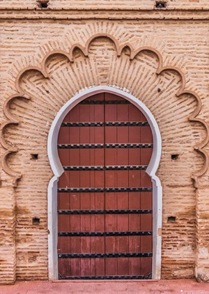 Discover the charm and mystique of heritage encapsulated in the 'Door' poster. This captivating piece showcases a stunning photograph of a traditional arched doorway, inviting a sense of historical curiosity and architectural appreciation into any space. The earthy terracotta hues of the brickwork elegantly complement the dark, rich tones of the wooden door, while the intricate, scalloped archway adds an ornamental touch with its precise, delicate details. The contrast between the weathered textures and the strength conveyed by the barricaded entrance creates a juxtaposition that is visually engaging and thought-provoking.