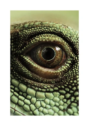 The 'Eye' poster captivates with its incredibly detailed and lifelike depiction of a reptilian eye. Dominated by a palette of earthy greens, rich browns, and subtle yellows, this poster invites onlookers into a world of intricate patterns created by the overlapping scales that seem to pulsate with life. At the center, the eye itself acts like a vortex, its deep, dark pupil encircled by a rusty iris that reflects a myriad of unspoken stories. The composition, with its tight, focused shot, creates an almost tangible texture that adds depth and realism to the image, ensuring that the gaze of the beholder is immediately and directly engaged.