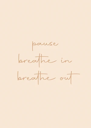 Emanate serenity and poise with our 'Break' poster, a tranquil addition to any space seeking a touch of mindful repose. With its neutral hues—a warm beige background paired with chocolate script—it summons a minimalist aesthetic that both soothes and captivates. The poster's simple yet elegant composition features the flowing words "pause, breathe in, breathe out," penned in a delicate, handwritten style. This focal typography dances with conscious imperfection, drawing the eye and engaging the spirit. This uncluttered design resonates with the principles of Zen and contemporary minimalism, offering a visual and symbolic respite from the complexities of daily life.