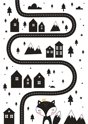 A minimalist, black and white poster with a charming illustration will be an interesting addition to your child's room.