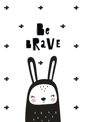 Even though he's tiny, he's very brave, just like our little bunny. This black-and-white illustration will not only brighten up the walls in a child's room, but can also be a great excuse to create all sorts of interesting stories, get to work.