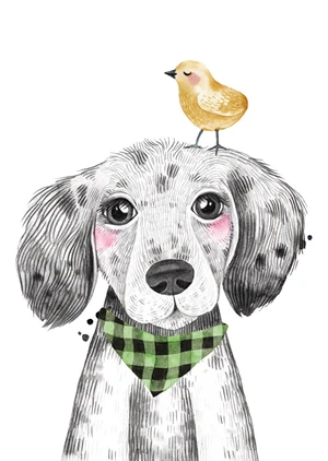 Dog with the bird