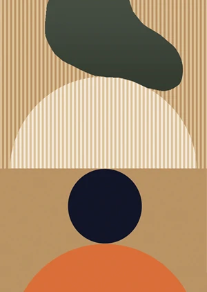 This poster, in a fashionable abstract style, attracts attention with its harmonious composition of beige, orange, and green geometric elements. Its minimalist form and colors create a modern, calming atmosphere. Perfect for hanging in a living room or office, it will emphasize the elegant simplicity of the interior.