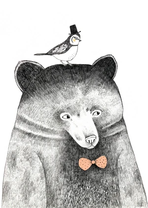 A poster of Mr. Teddy Bear with a pink bow tie.
