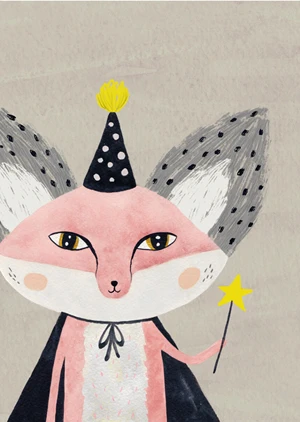A poster featuring a charming fox - wizards. The poster is styled after a watercolor painting.