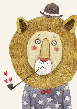 A poster with a cute, lovestruck lion.