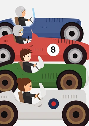 Three, two, one, zero start! This RACE poster is perfect for young car enthusiasts. Combined with our other Retro Cars posters, it will create a unique atmosphere in any child's room.