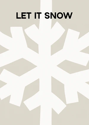 Drape your space in the serene charm of winter with the 'Let It Snow' poster, an ode to the whimsical beauty of the season. The minimalist composition showcases a bold, graphic snowflake set against a soothing, neutral-toned backdrop. A clean, modern font subtly conveys the message, providing balance without overwhelming the visual centerpiece. White and beige tones interplay, evoking the soft quietude of falling snow, while the stark simplicity of the snowflake offers a striking contrast that captivates and delights the eye.