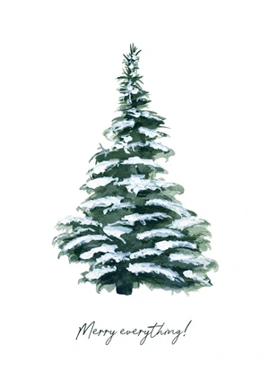 A poster depicting a snow-covered Christmas tree on a white background is the perfect idea for the holiday season.