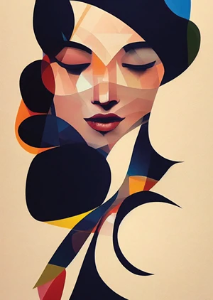 This piece appears to channel the influences of Cubism and contemporary design, fusing fragmented abstraction with sleek modernity. The choice of colors and the flowing lines seem to draw inspiration from Art Nouveau, yet through a distinctly 21st-century lens, resulting in a design that feels both nostalgic and refreshingly new. Onlookers may find themselves enveloped in a mood of tranquility and understated elegance, making the poster more than mere wall decor but a source of daily inspiration. It is particularly suited for environments where calm and creativity are prized, such as a meditation space, a chic living room, or a design-forward office. 'Woman' invites contemplation and calm, offering an artistic refuge in any setting it graces.