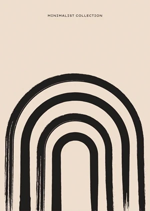 Introducing 'Minimalist'—an exquisite poster that embodies the essence of simplicity and sophistication. The composition features a series of arches in a descending size order, rendered in bold black against a pleasing neutral backdrop. This choice of a soft, earthy tone seamlessly complements the stark black curves, creating a visual experience that's both impactful and understated. The poster's spaciousness is intentional, guiding the viewer's attention to the artwork's central motif and establishing a focal point that is both meditative and elegant. The design's modest palette and clean lines reflect a modern aesthetic that is versatile enough to enhance any decor.