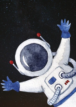 Dreams come true! Hurray, finally the long-awaited journey into space! What an incredible feeling! This children's poster depicts a young astronaut. Styled to resemble a watercolor painting, this poster is the perfect addition to any young adventurer's room.