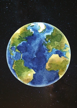 One of the most beautiful views – Earth... A children's poster depicting Earth. Styled to resemble a watercolor painting, this poster is the perfect addition to a young adventurer's room.