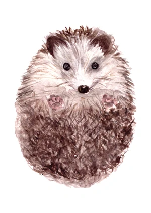 Who will take care of our little hedgehog? This poster is styled after a watercolor painting.
