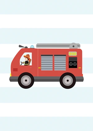 A colorful poster of a fire truck is the perfect addition to a child's room.