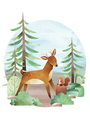 Good morning dear little squirrel, it's so good to see you... This colorful poster with a cute deer and squirrel, along with other posters from the Once Upon a Time in the Woods collection, will be a perfect addition to your child's room.