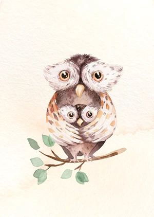 Two charming owls perched on a branch will steal your heart. This watercolor-style poster will be the perfect addition to a forest-themed children's room. Together with other posters from the series, it will create a unique, cozy atmosphere.