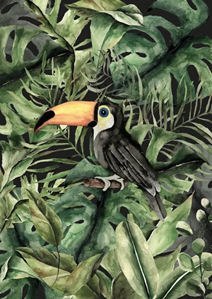 Longing for summer? This poster is perfect for you; it will bring a summery atmosphere to your home. The vibrant green illustration with a charming toucan will be the perfect addition to your walls.