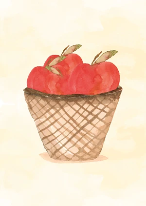 This pastel-toned poster of a basket of apples is a fantastic addition to a child's room. This illustration is sure to warm up any space in your home.