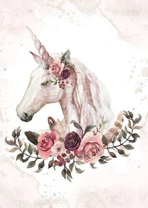 This unicorn in flowers poster is a beautiful illustration styled after a watercolor painting, perfect for a boho interior. See all!