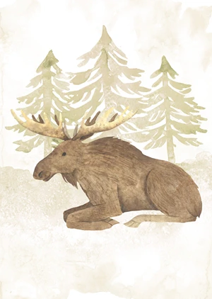 This watercolor-style poster depicting a moose is a perfect decoration for a child's room. Together with other posters from the series, it will create a wonderful forest atmosphere in a child's room.