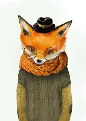 A poster depicting a fox styled as a watercolor painting is a beautiful addition to a child's room.