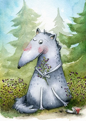 Walery the Wolf is a real herb, but he's also a loveable one :) The illustration was hand-painted with watercolors, then scanned and printed in high quality.