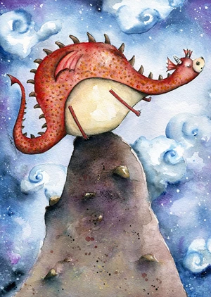Flammo the dragon loves days full of adventure, but like any dragon, he also enjoys a good night's sleep. This illustration was hand-painted with watercolors, then scanned and printed in high quality.