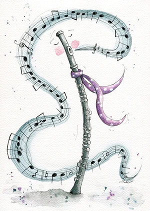 The Singing Flute Romantic will play beautifully for any occasion :) The illustration was hand-painted with watercolors, then scanned and printed in high quality.